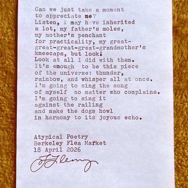Bringing original typewriter poems to local spots all over the Bay Area.
